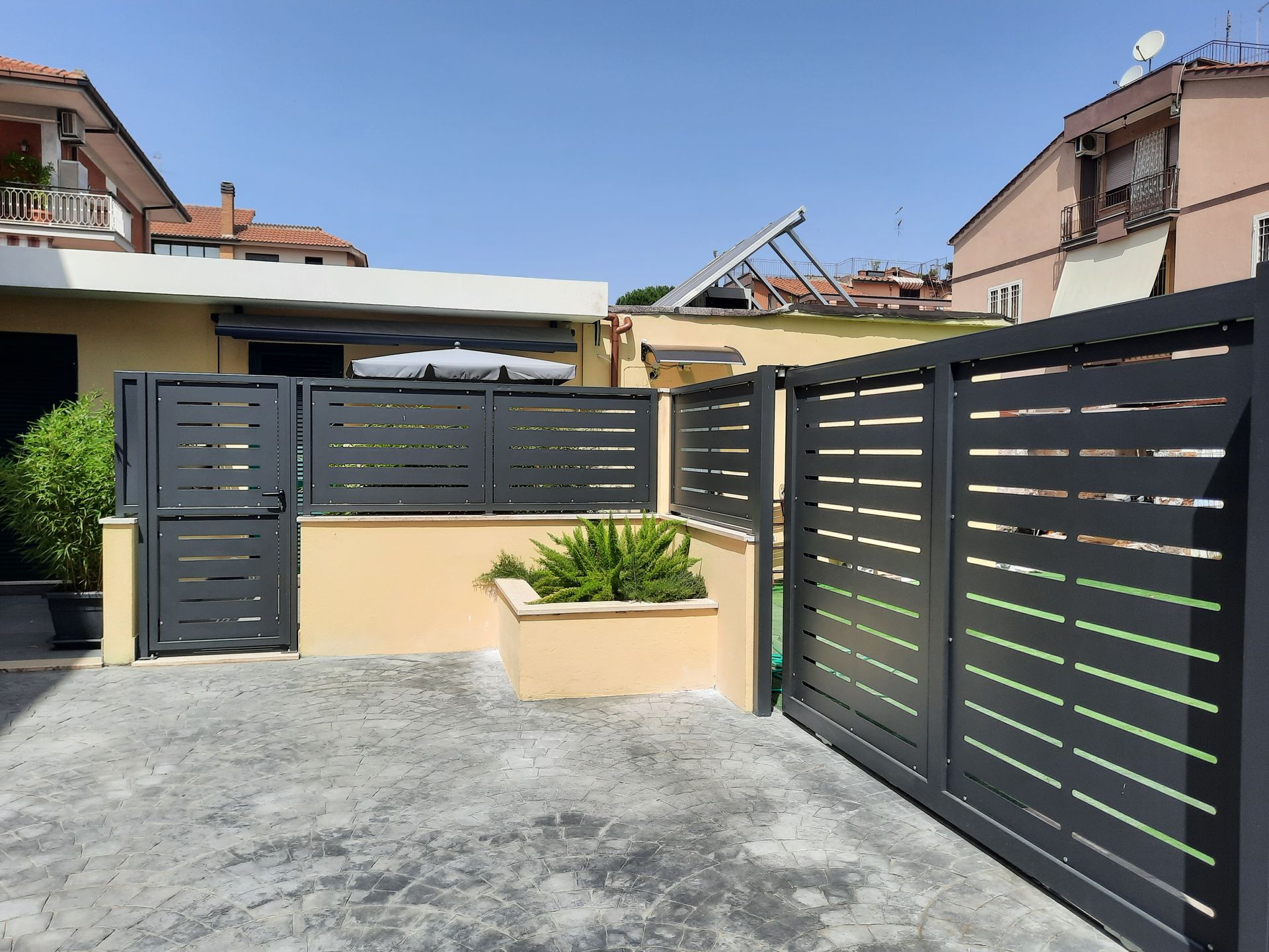 Grate, persiane, cancelli ed opere in ferro. Pensiline in alluminio, ferro e vetro. Arredo urbano. Zanzariere, tende tecniche da interno.